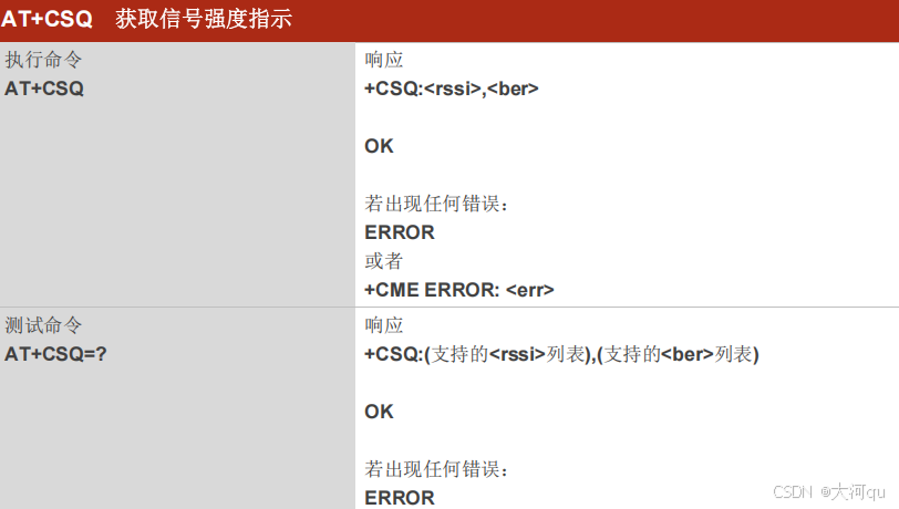 解析:CSQ 没有传统意义上设置指令,即没有 AT+CSQ= 之类的指令,只需要简单执行 AT+CSQ