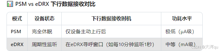 解析:PSM:设备完全休眠,仅主动上行可唤醒。