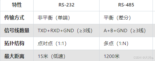 RS-232采用平衡传输、差分传输方式,支持一对多的通信方式。