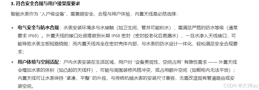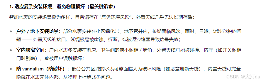 下列选项中,哪几项属于NB-IoT水表类设备对天线选型的诉求?