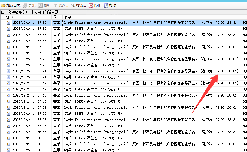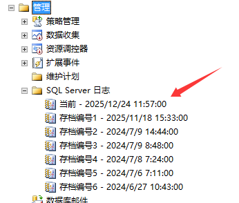 于是我打开SQLSERVER的数据库管理,找到当前的错误日志