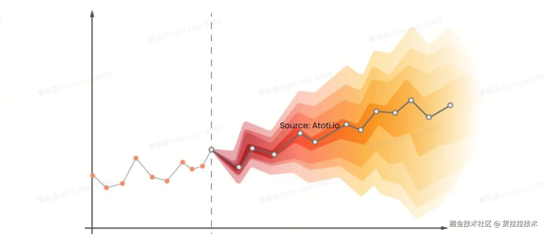 - 我们把订单波动区域范围的预测看作历史订单的时间序列预测问题 ,透过机器学习模型 ,根据某一 历史订单流量 情况下,预测 未来最大/最小可能出现的订单波动 ,作为告警阈值。