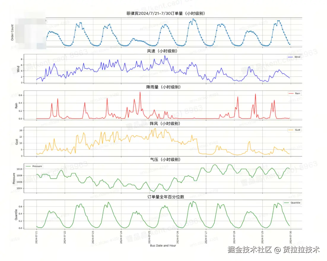 由上图我们发现除了降雨量,风速有影响外,气压、阵风在这个场景中也出现了共振。