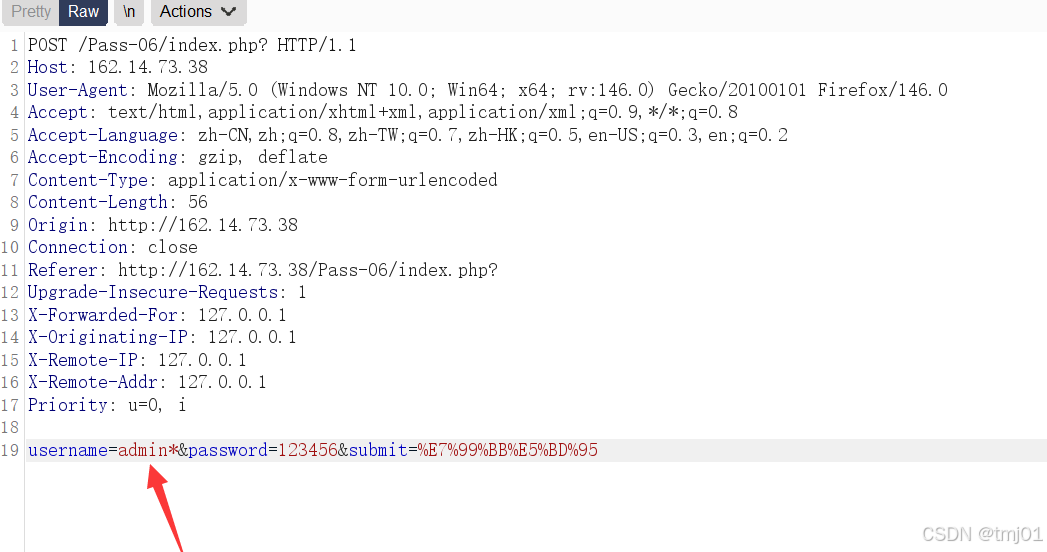 注入点为username,打上 *****代表指定sqlmap以此为注入点
