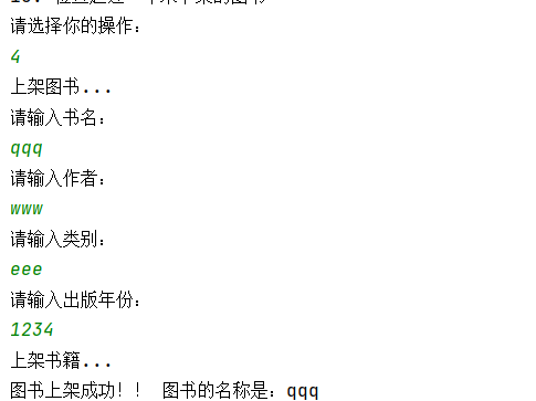 3、图书上架功能运行界面