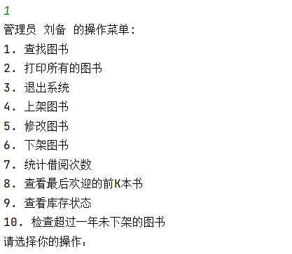 | | 共用功能 | 图书查找、显示所有图书、退出系统 |