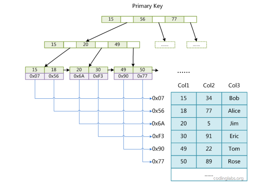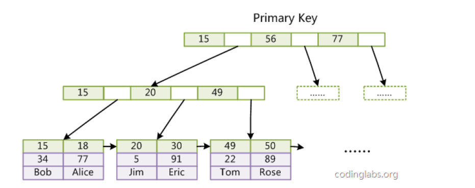- 范围查询:只需找到范围的起始关键字所在的叶子节点,然后通过链表依次遍历到范围的结束关键字,无需回溯父节点;