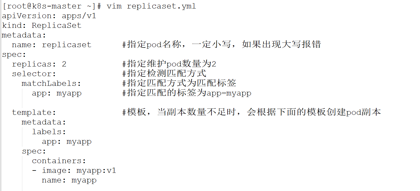 kubectl apply -f replicaset.yml 应用配置文件 创建