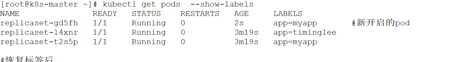 kubectl label pod replicaset-l4xnr app=timinglee --overwrite #replicaset是通过标签匹配pod