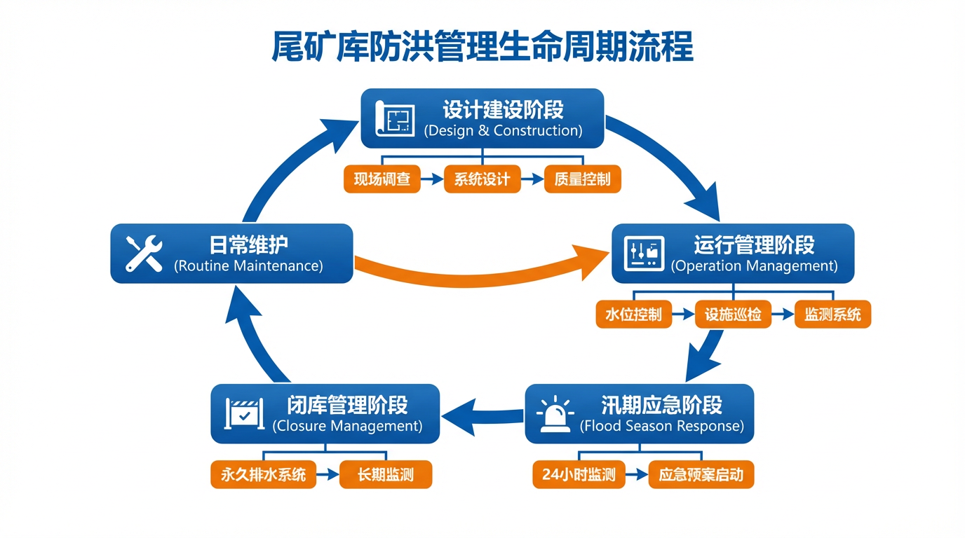 "防洪 "工作贯穿于尾矿库从设计、建设、运行到闭库的全生命周期,任何环节的疏忽都可能导致整个系统的失效,引发灾难性后果。因此,它始终是尾矿库安全监管的重中之重。