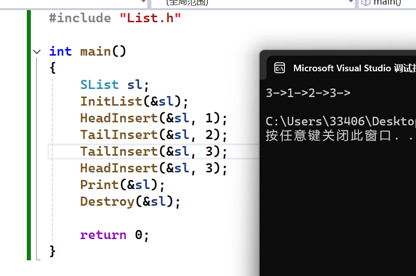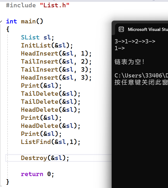 这基本上就是单向链表的基础功能了。最后我们将头文件补充完整: