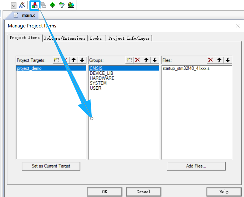 SYSTEM文件夹下的system_stm32f4xx.c。 - 「USER」分组:添加
