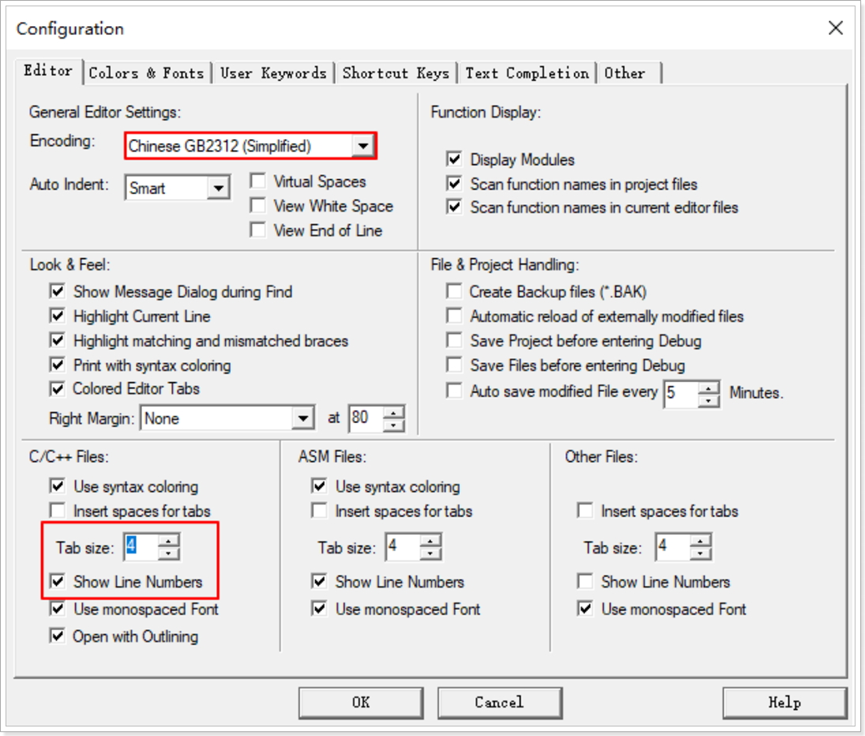 字符编码设置:配置为中文简体GB2312,避免中文注释乱码。
