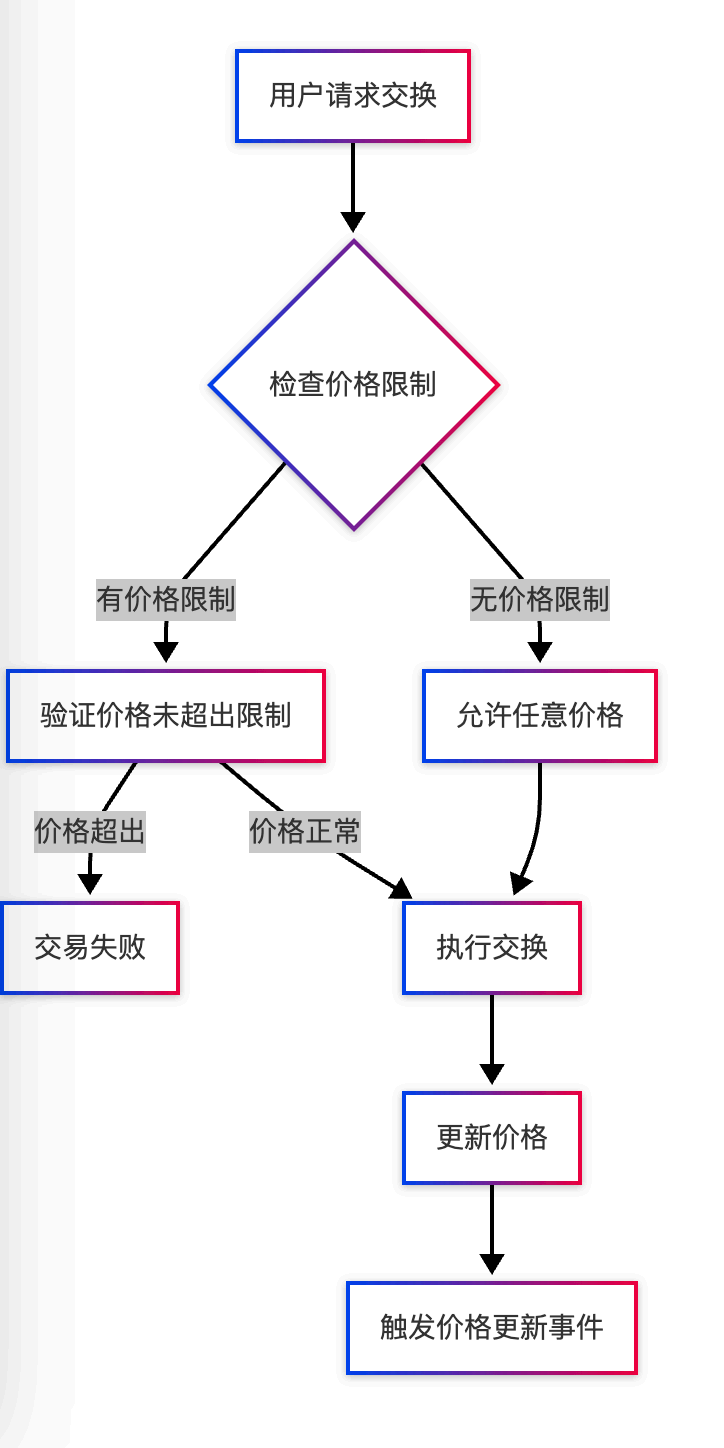 下⾯的流程图展示了价格限制检查的完整流程。这个机制确保了价格不会超出⽤户设定的范围。