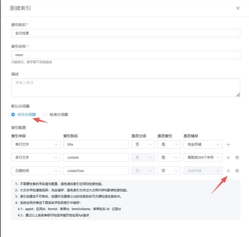 1:不需要检索的字段请勿配置,避免增加索引空间和检索性能。