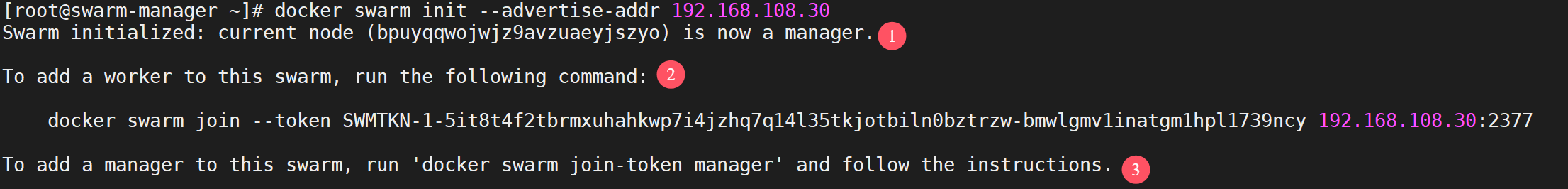 [root@swarm-manager ~ 17:53:50]# docker swarm init --advertise-addr 192.168.108.30