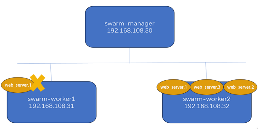 创建 service 的时候,我们没有告诉 swarm 发生故障时该如何处理,只是说明了我们期望的状态(比如 运行3个副本),swarm 会尽最大的努力达成这个期望状态,无论发生什么状况。