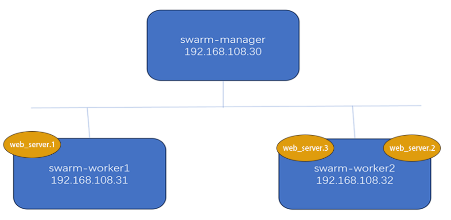 swarm-manager 是 manager node,swarm-worker1 和 swarm-worker2 是 worker node。