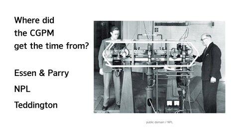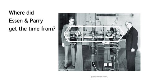 在原子钟之前,秒的定义基于天文学,因此 Essen 和 Parry 需要天文学家的帮助来确定他们的钟相对于当时标准的走时速度。