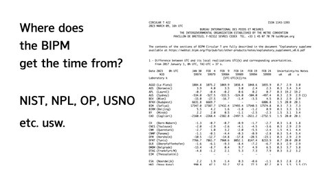 他们会定期发布 Circular T,其中包含官方 UTC 与各国家实验室 UTC 之间的偏差信息。