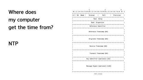本周我在鹿特丹参加 RIPE 会议。周五上午我做了一个闪电演讲,题为 "我的电脑的时间到底来自哪里?"
