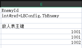 int#ref=LBConfig.TbEnemy 意思是,这里配置的主键id是否在表LBConfig.TbEnemy存在。