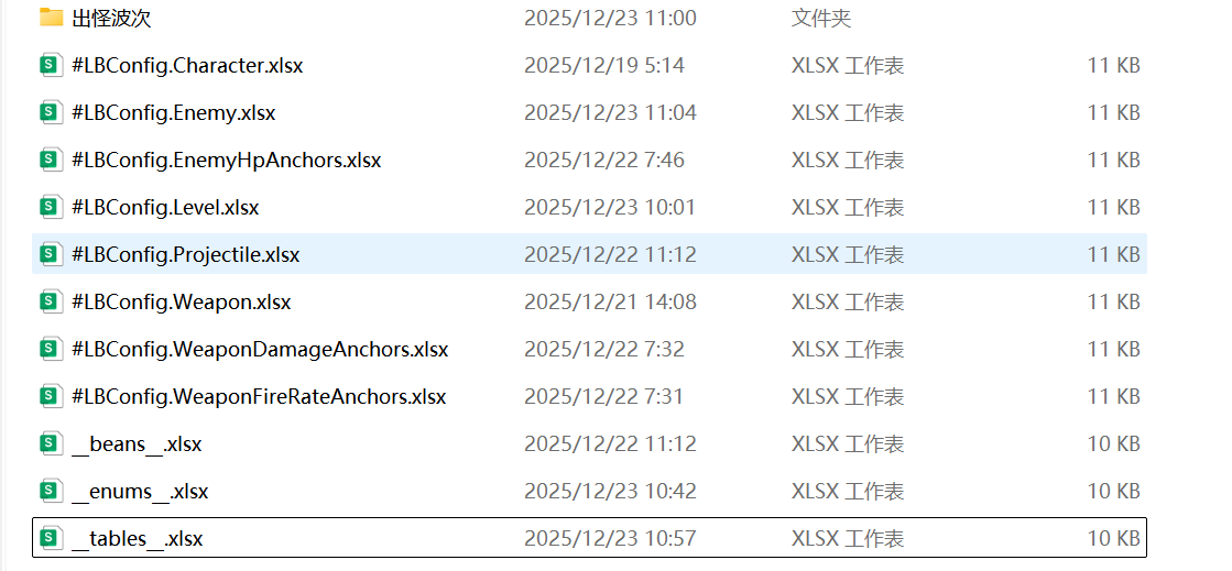 这些#开头的表不需要在__tables__.xlsx配置,自动生成【LBConfig.TbXXXX】的表。