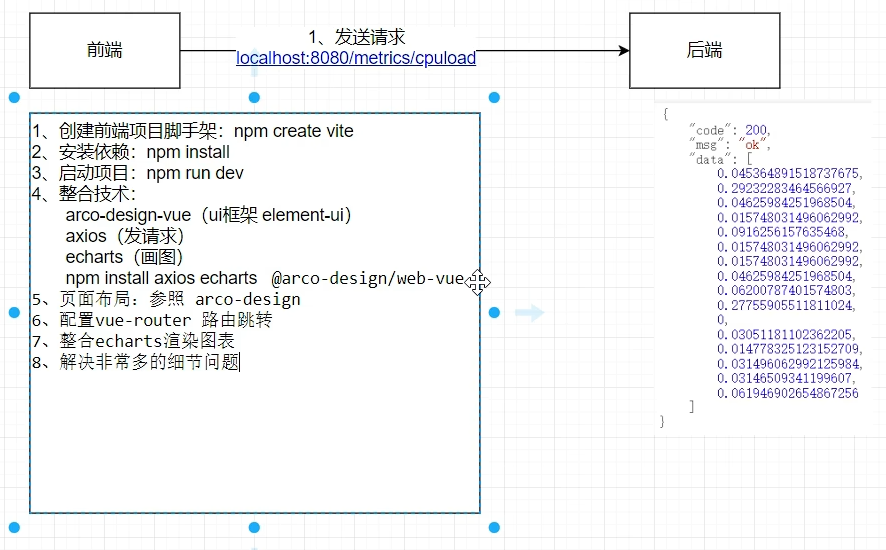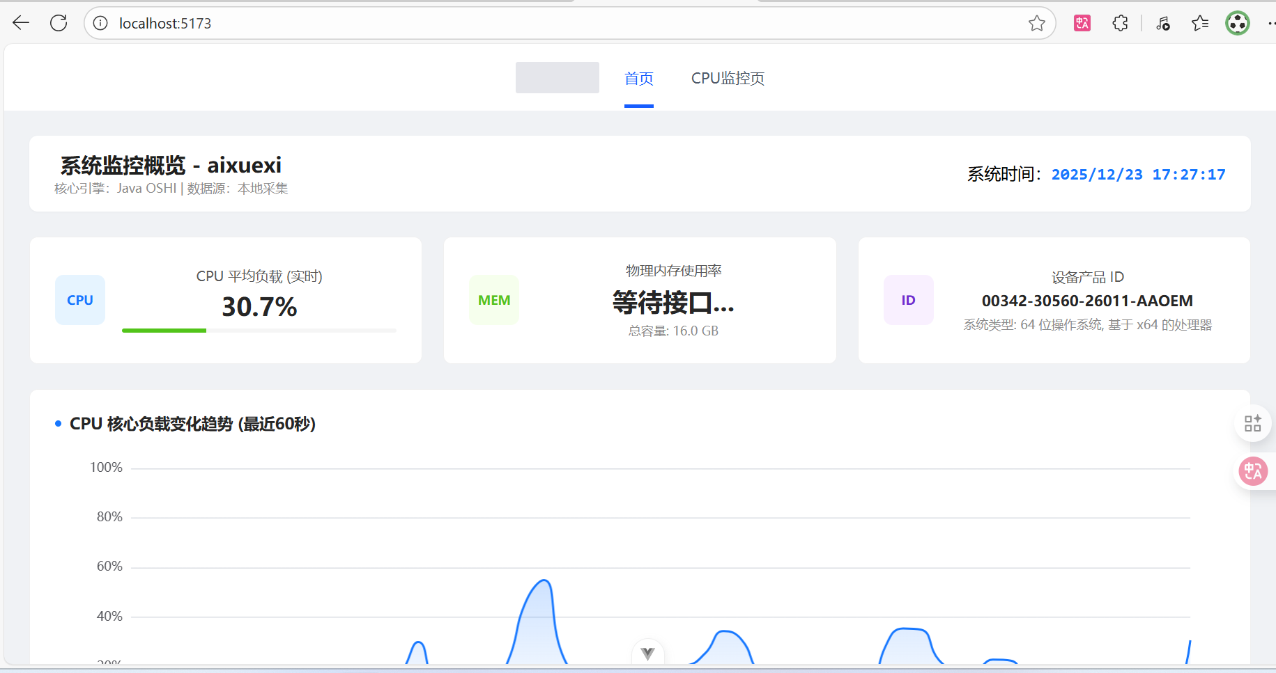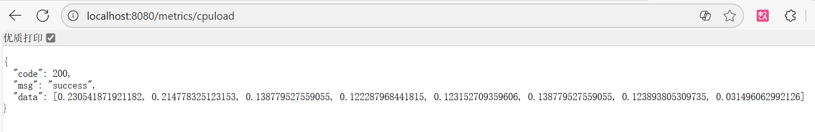 后端这样就写完了,后端这里只写了cpu 1s 内的负载的数据,想返回其他数据自己通过看oshi api文档另加
