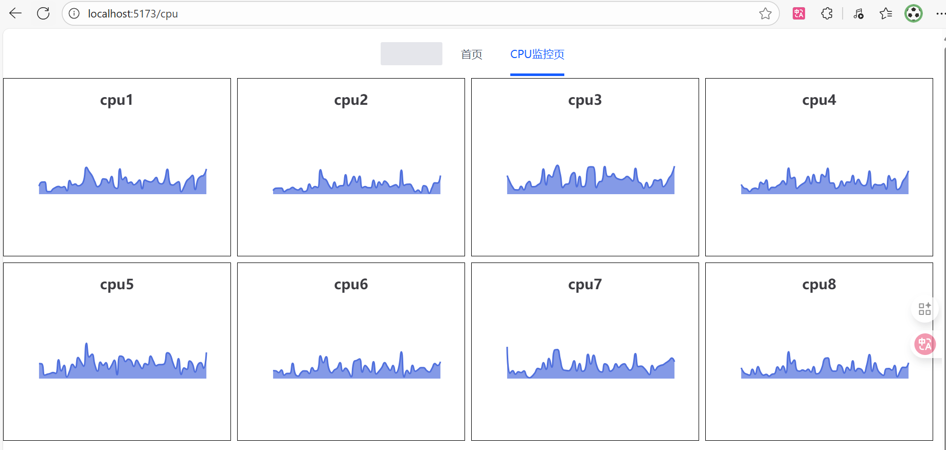 把这个指标数据交给前端,让前端可视化展示就行,输出里数组的每一项就是每一个逻辑处理器cpu的使用率