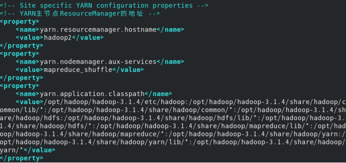 <value>/opt/hadoop/hadoop-3.1.4/etc/hadoop:/opt/hadoop/hadoop-3.1.4/share/hadoop/common/lib/*:/opt/hadoop/hadoop-3.1.4/share/hadoop/common/*:/opt/hadoop/hadoop-3.1.4/share/hadoop/hdfs:/opt/hadoop/hadoop-3.1.4/share/hadoop/hdfs/lib/*:/opt/hadoop/hadoop-3.1.4/share/hadoop/hdfs/*:/opt/hadoop/hadoop-3.1.4/share/hadoop/mapreduce/lib/*:/opt/hadoop/hadoop-3.1.4/share/hadoop/mapreduce/*:/opt/hadoop/hadoop-3.1.4/share/hadoop/yarn:/opt/hadoop/hadoop-3.1.4/share/hadoop/yarn/lib/*:/opt/hadoop/hadoop-3.1.4/share/hadoop/yarn/*</value>