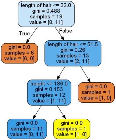 它会给出上述代码的预测为**[Woman]**,并生成以下决策树−