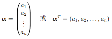 - 后者称为 n 维行向量(列向量的转置);