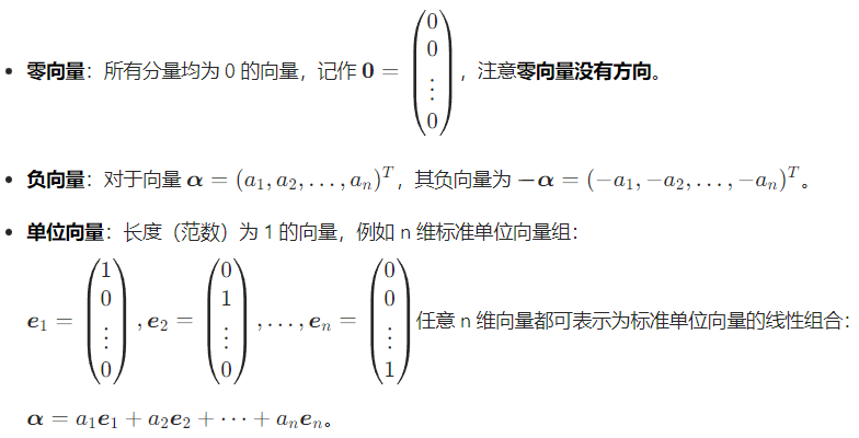 - 前者称为 n 维列向量(默认形式,与矩阵运算兼容性更好);