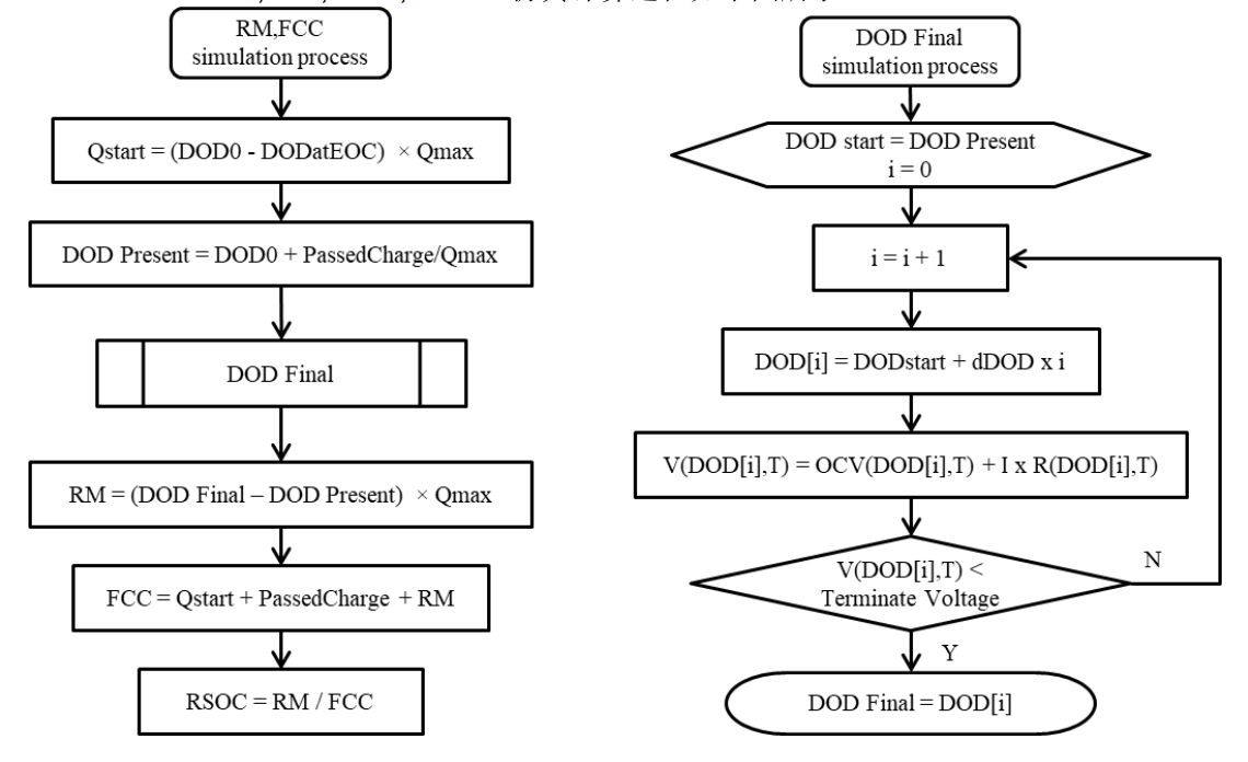 放电前的放电深度为 DOD0,DOD0 和 Qmax 在 Relax Mode更新,当进入Relax Mode 10分钟后电量计读取 OCV,查表DOD(OCV,T) 来确认 DOD0,然后然后每隔 100 秒读一次 OCV,计算 DOD;