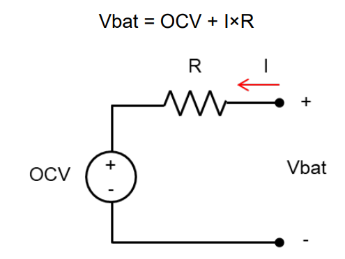 电压源为电池开路电压(OCV),电阻为电池内阻R