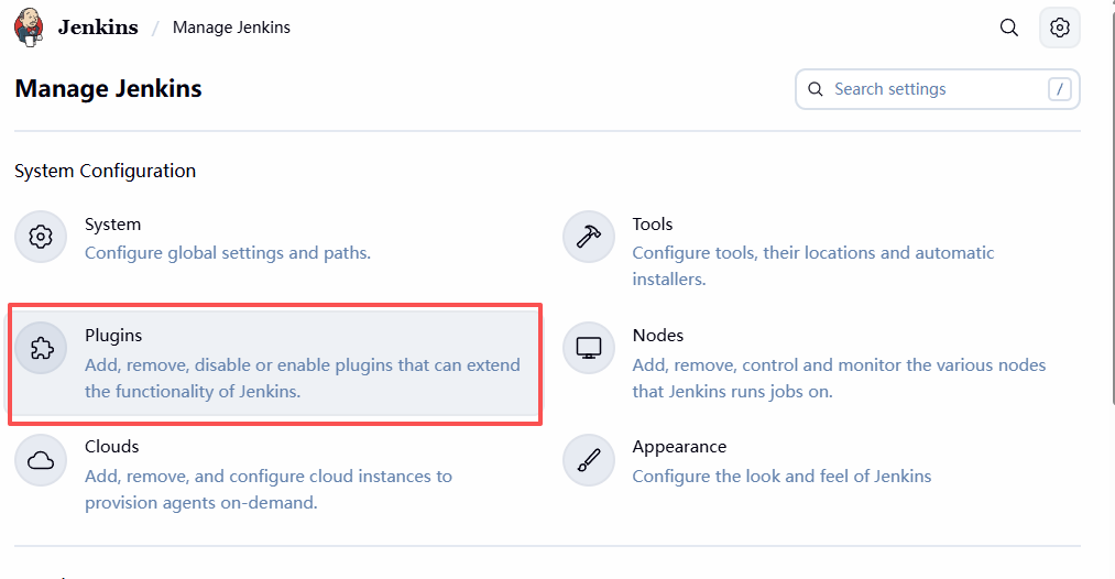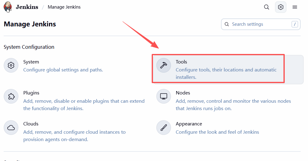 - 在jenkins页面Manage Jenkins → Tools(全局配置工具),点击进入