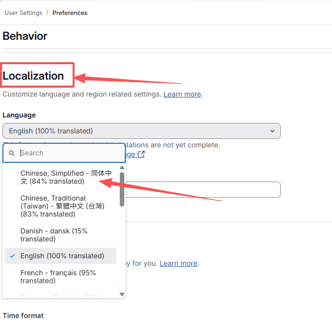 - 点击页面右上角的你的头像,找到并点击 "Preferences" (偏好设置)