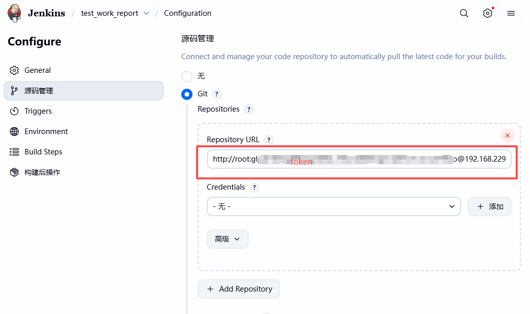http://<username>:<token>@Your_IP:8001/root/work_report.git