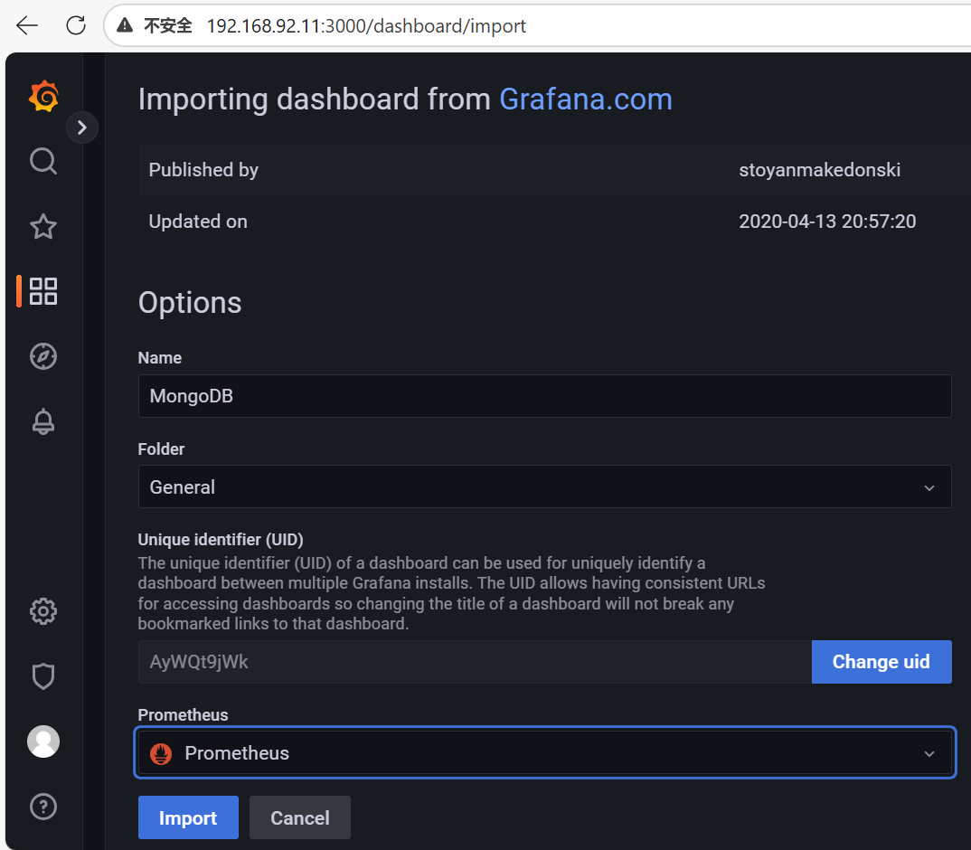 copy id to clipboard->grafana的dashboards中Import dashboard