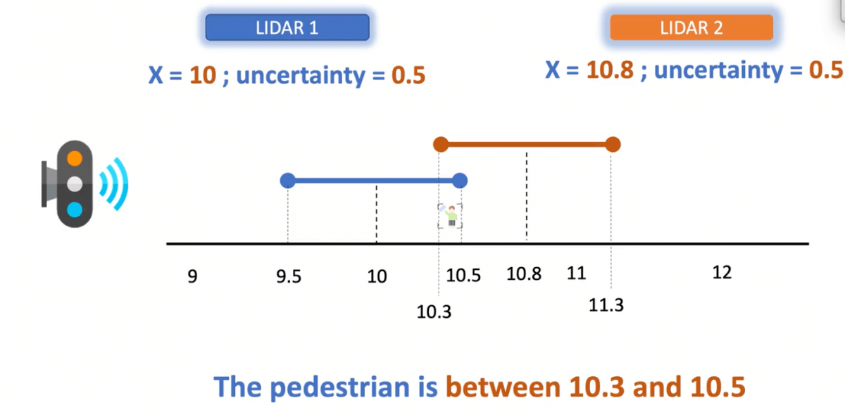 - 摄像头说前面有辆车(置信度0.8),雷达说前面有障碍物(置信度0.9)。