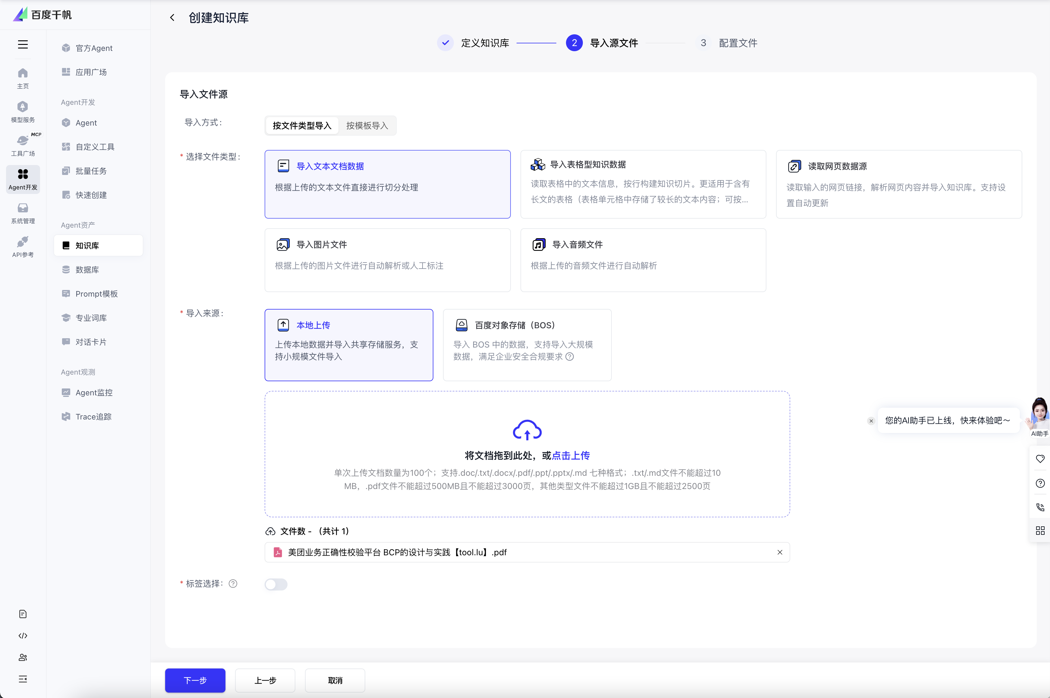 百度千帆知识库是百度智能云推出的一款专门面向大语言模型知识问答场景,旨在管理客户上传的知识并提供快速查询检索功能的产品。