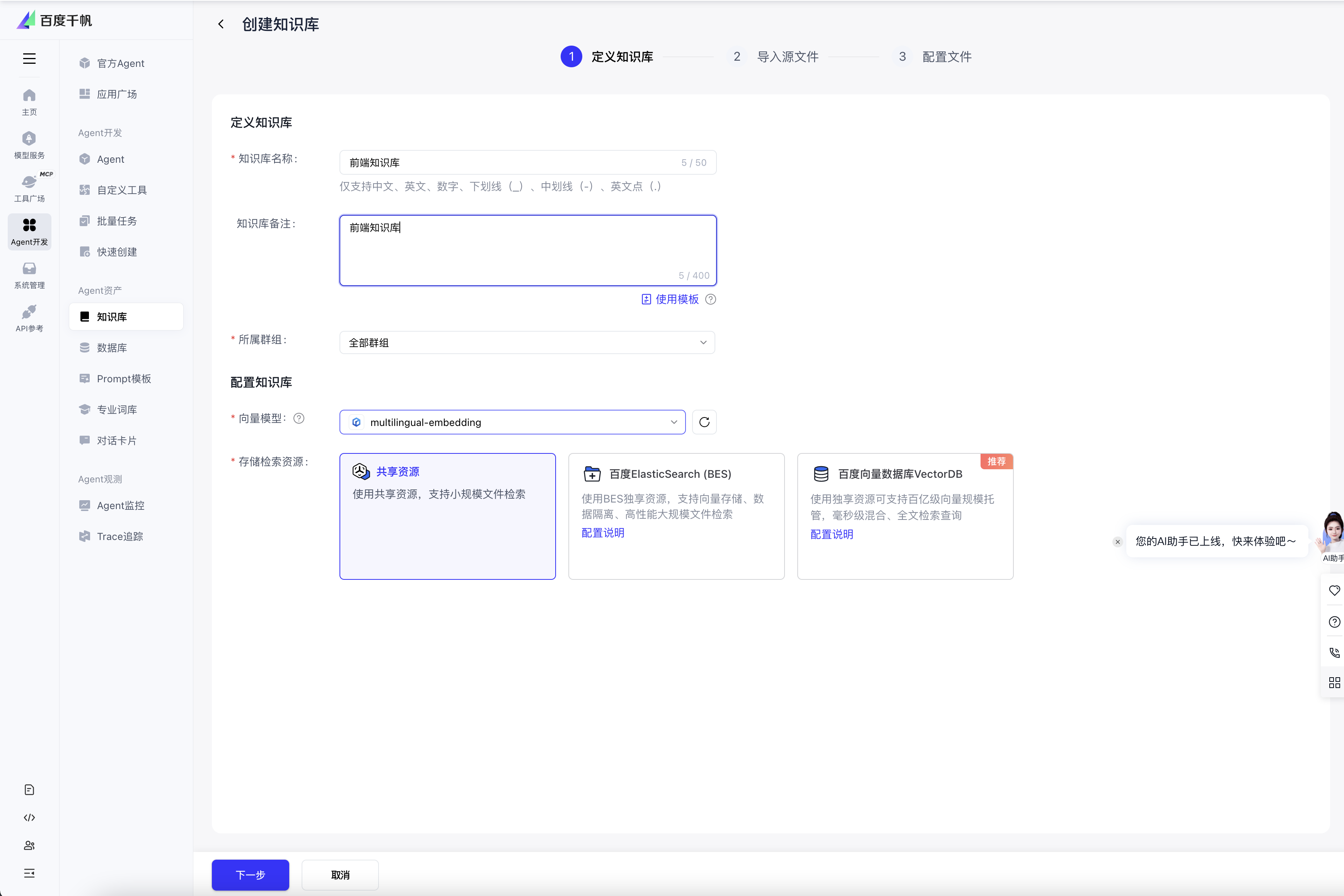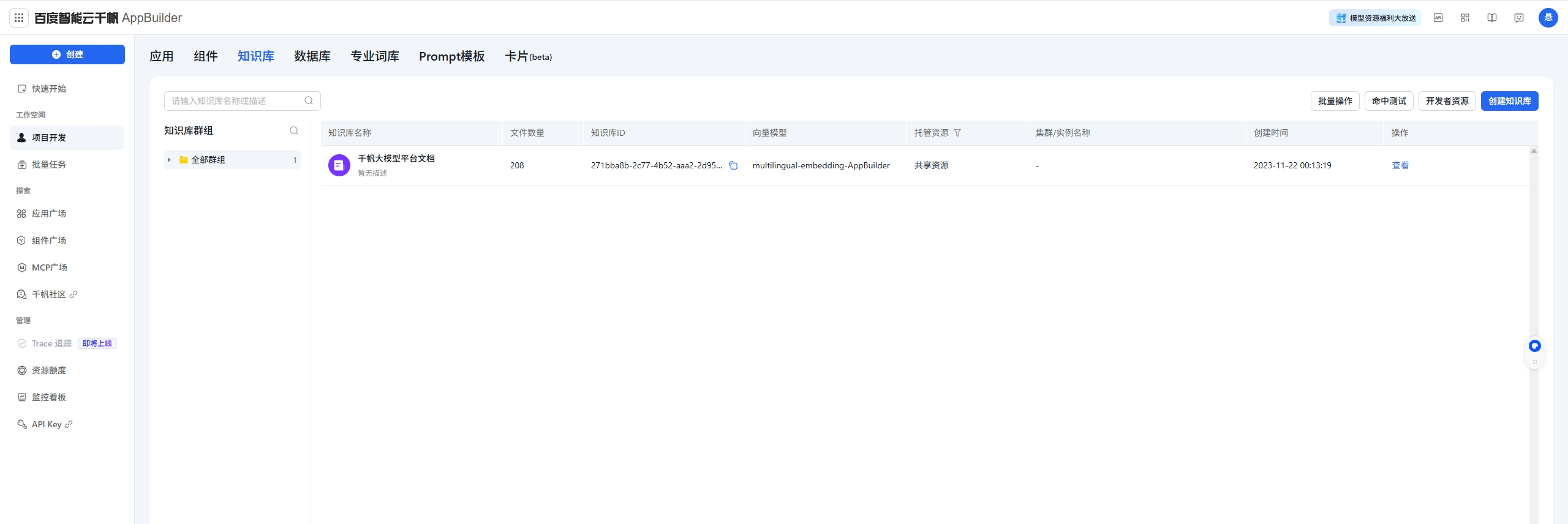 - 访问千帆知识库官网: