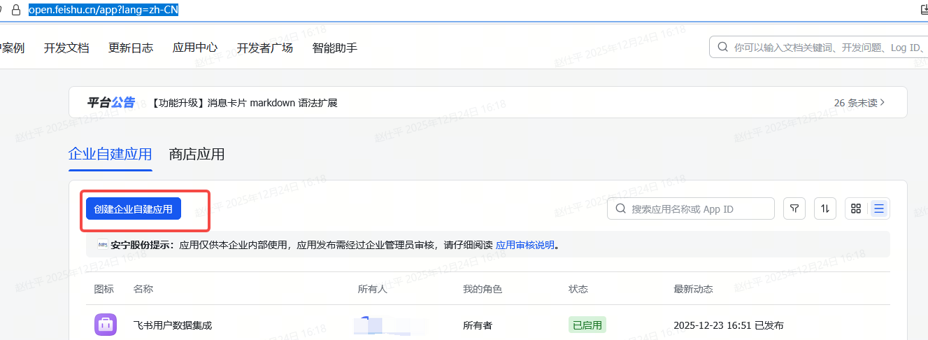 打开,创建应用并给予对应的权限。创建过程让初学者有点懵,我选的机器人。