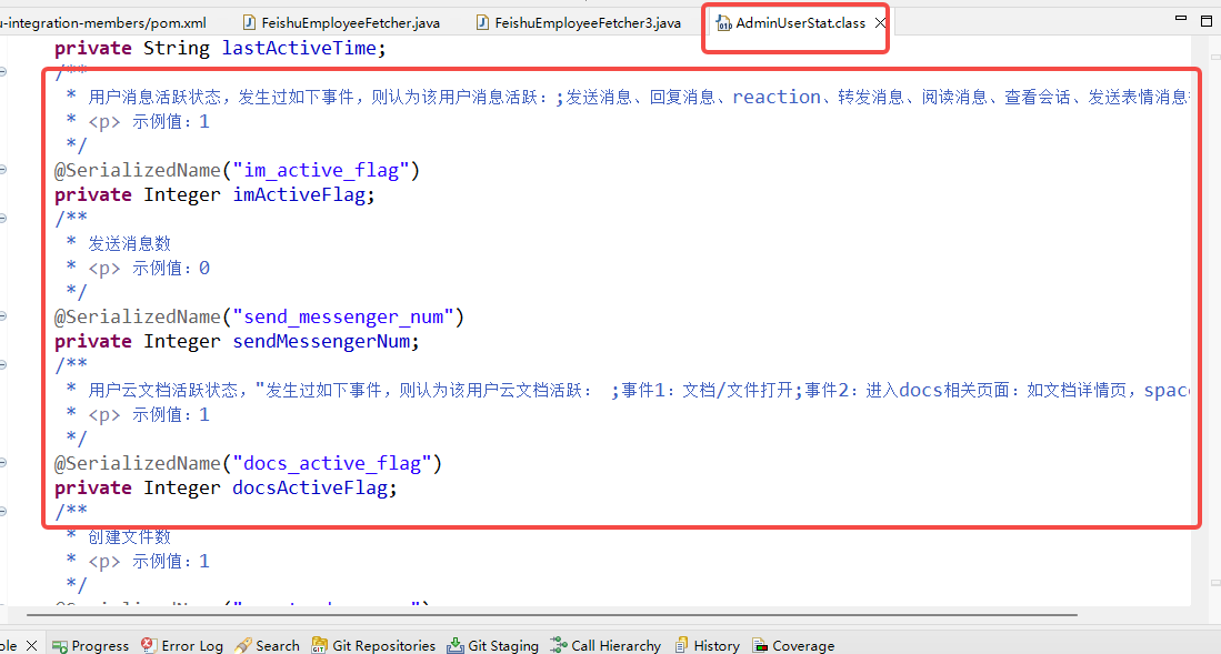 String[] headers = { "日期", "User ID", "姓名", "部门", "发送消息数", "创建文件数", "创建日程数", "会议时长(分钟)", "会议数", "创建任务数", "总发件量",