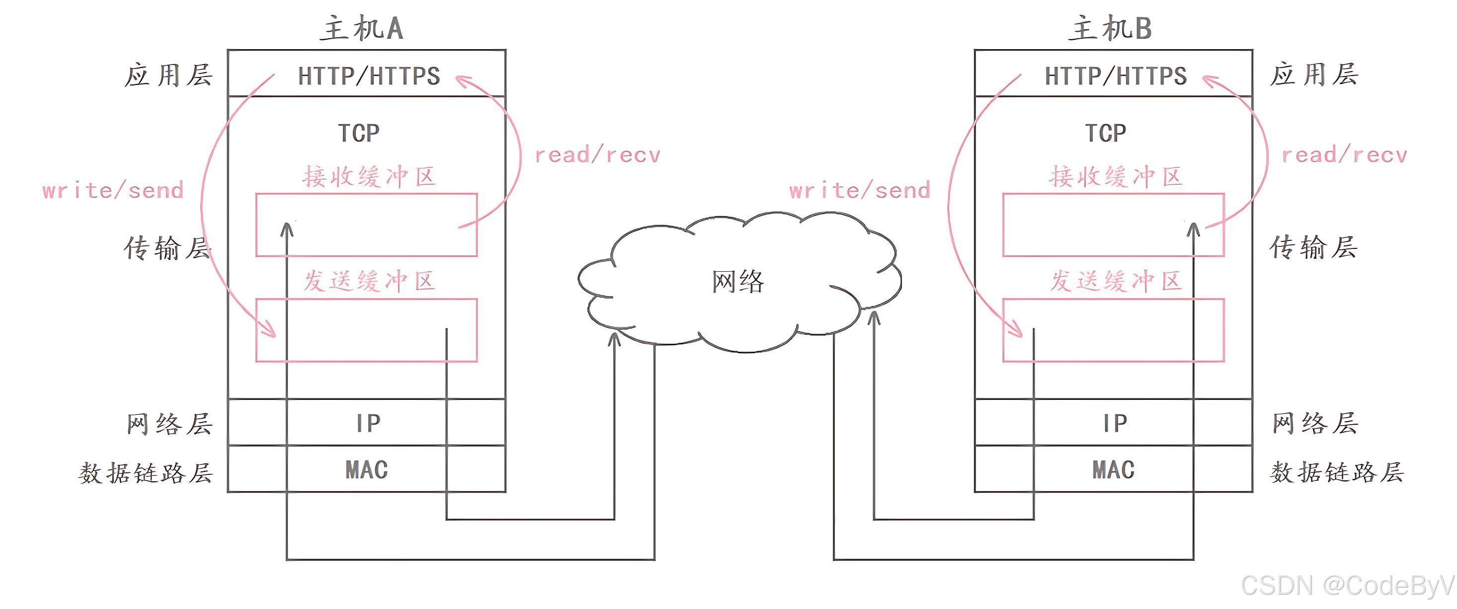write()发送数据,数据先写入"发送缓冲区",内核按需拆分为TCP报文段发送(如超过MSS(最大分段大小)则拆分); - 接收端:TCP报文段到达后,数据先写入"接收缓冲区",应用层调用