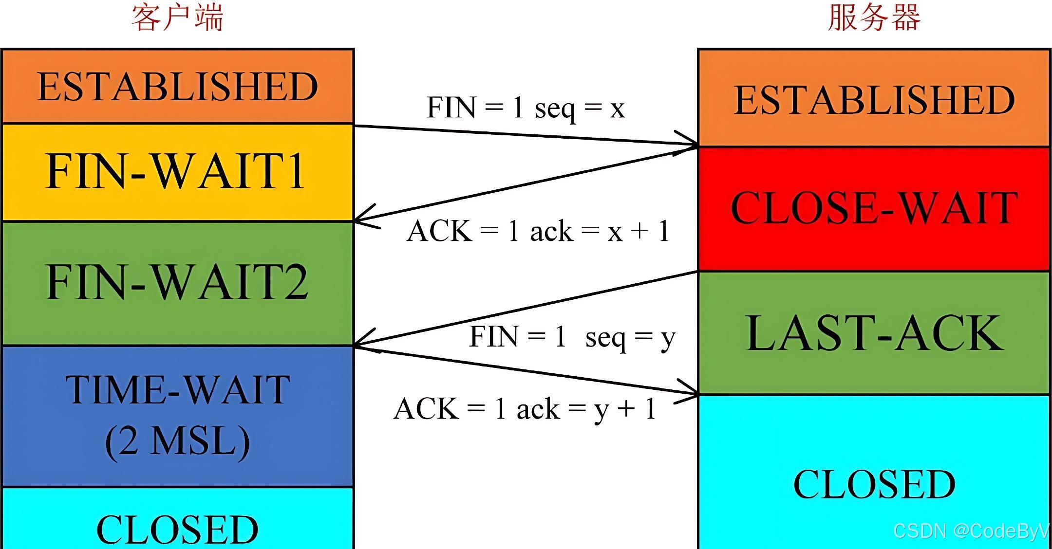 LAST_ACK进入CLOSED; - 客户端特殊处理:需等待2MSL(报文最大生存时间) 后,从
