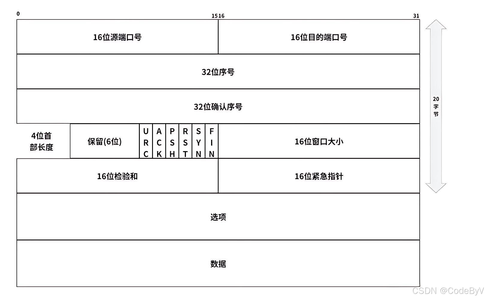 TCP首部是TCP协议的"控制中枢",包含连接管理、可靠性保障、流量控制所需的全部信息,长度可变(20~60字节,含选项字段)。