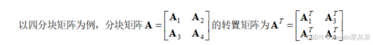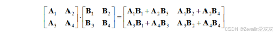 与矩阵的乘法类似,以四分块矩阵为例,分块矩阵的乘法表示为