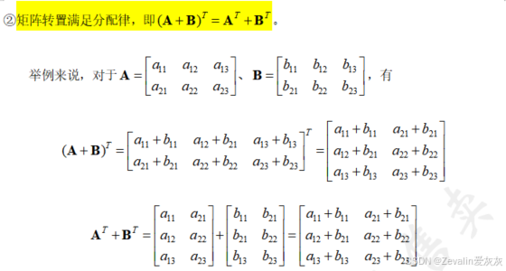 (2)两个矩阵能够相加的前提是二者为同型矩阵,即二者的行数相同,列数也相同。