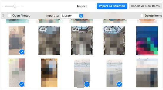 步骤 4. 选择要导入的视频,然后点击顶部的"导入所选内容"按钮。(照片无法从 iPhone 导入到Mac吗?)